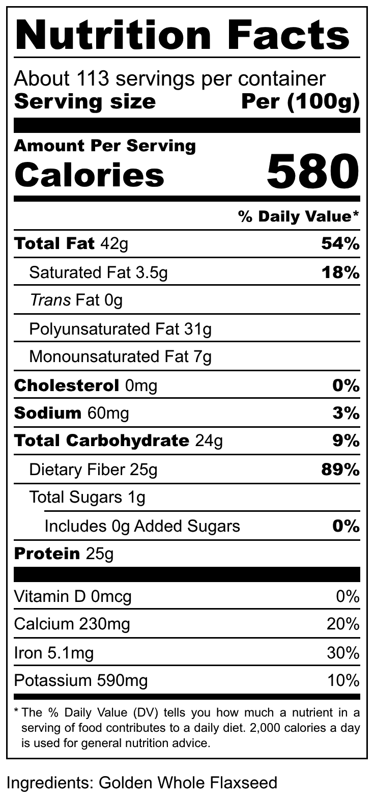 *This product includes one 25lb kraft bag of our Natural Whole Golden Flaxseed*