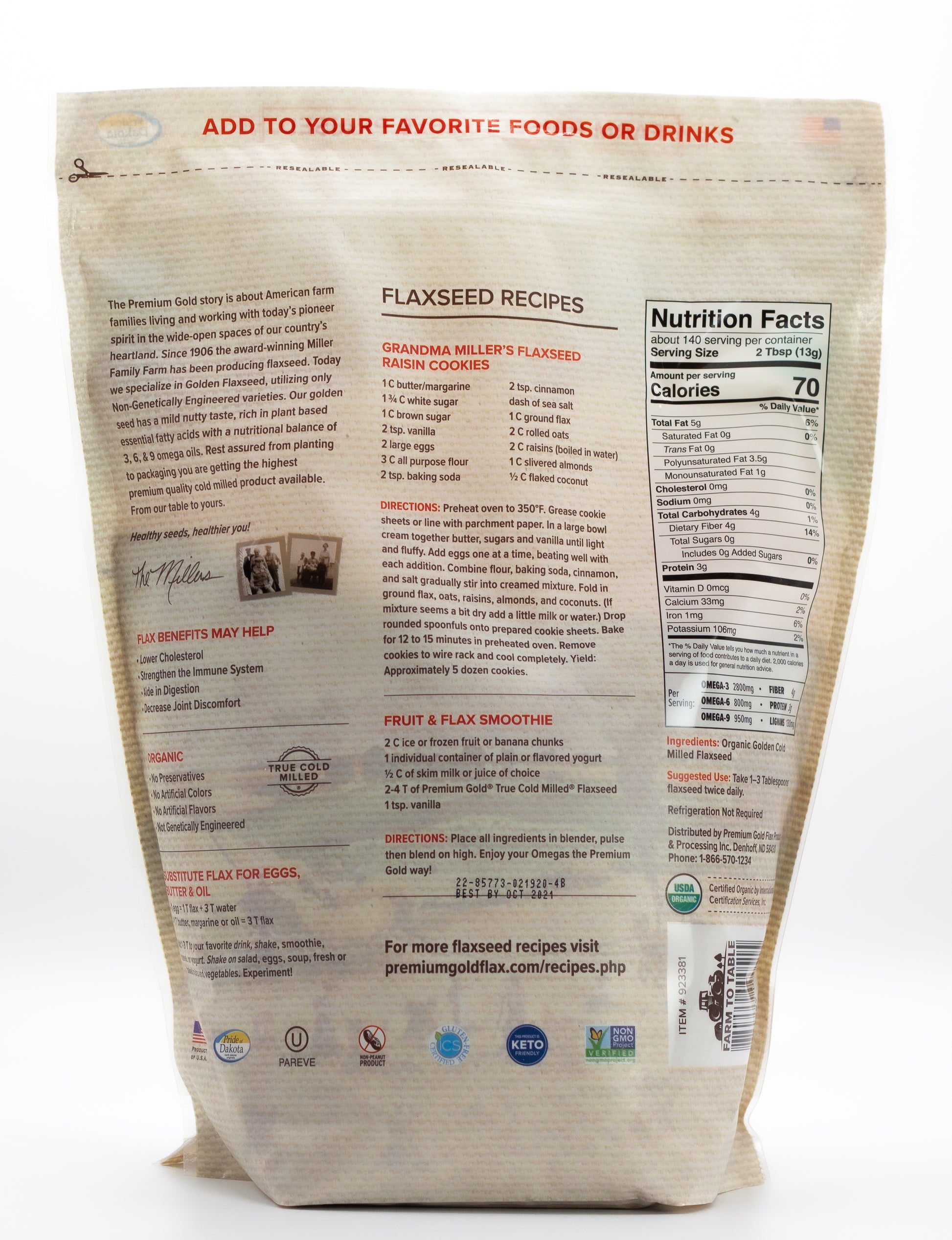 At Premium Gold we hand select the best tasting non-engineered seeds to plant, farm naturally without using pesticides, mill using our proprietary True Cold Milled process to provide the longest lasting shelf life, pick through the crop to ensure the highest quality product, and package the product to ensure there isn’t anything but flax in your package. These are only a portion of the quality checks we do to make sure you have the best tasting flax on your table.